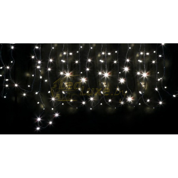 Светодиодная уличная гирлянда 120 LED состоит из модулей по 4 метра, светодиодные лампочки расположены на расстоянии 10 см друг от друга. В одну сеть можно подключить до 25 гирлянд (300 метров).